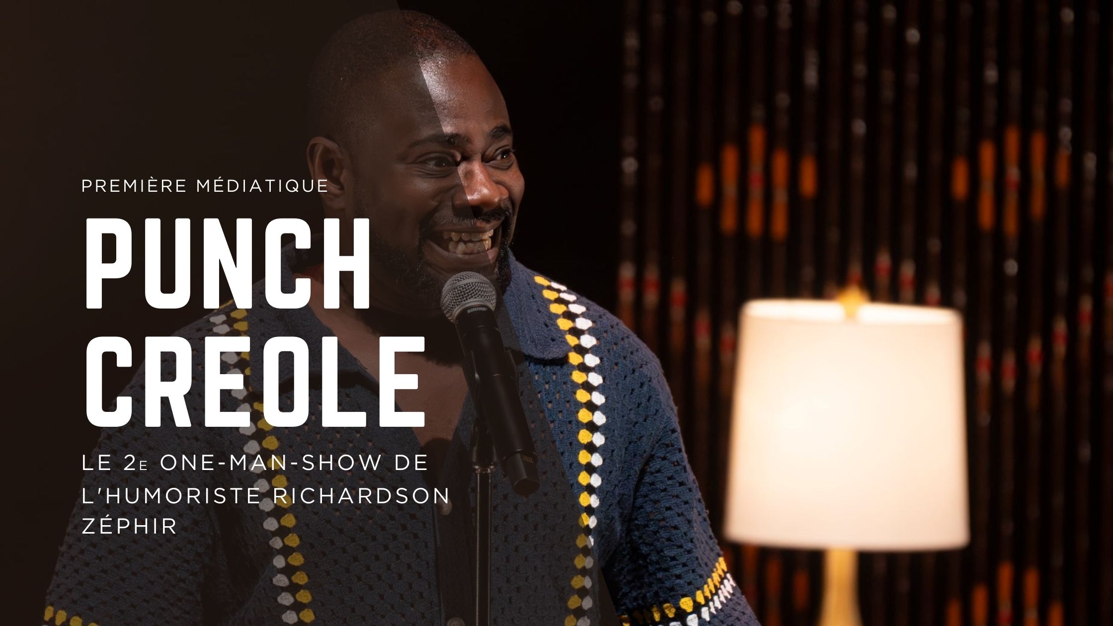 La salle Pierre-Mercure, à Montréal, accueillait hier soir la première médiatique de Punch Créole, le nouveau spectacle de l’humoriste Richardson Zéphir. Présentée devant un public composé de personnalités issues des milieux culturel et médiatique, cette soirée marquait le lancement officiel d’un projet où l’humour se conjugue à l’identité et au parcours personnel de l’artiste.