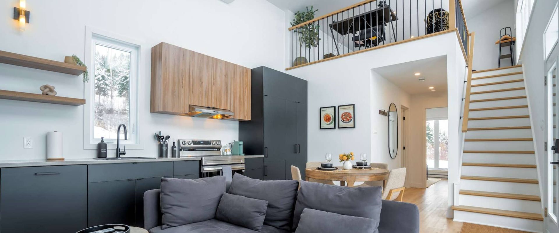 À seulement 1 h 30 de Montréal, le couple propose deux refuges quatre saisons, pensés comme une extension naturelle de leur univers : esthétique, intentionnel et profondément humain.